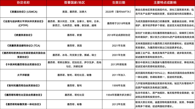墨西哥与部分国家的自由贸易协定