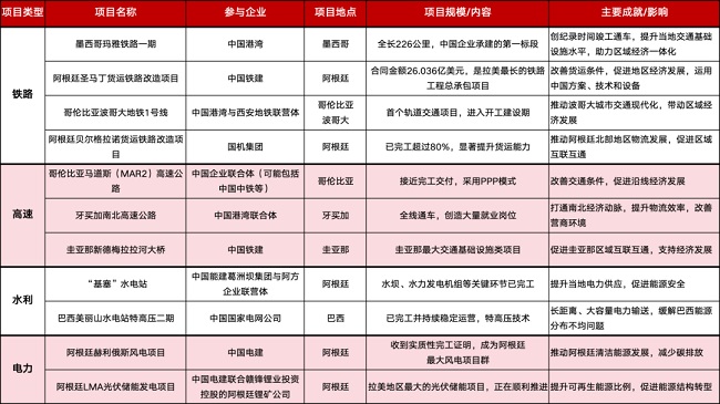 中国企业在拉美地区参与的基础设施建设项目的具体情况