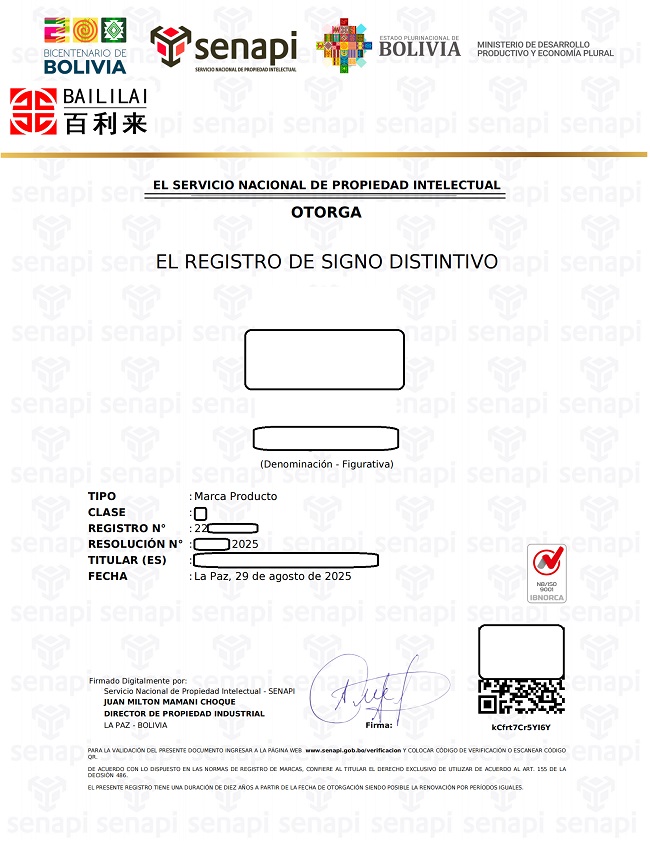 负责监管玻利维亚商标的主要政府机构为玻利维亚国家工业产权局。