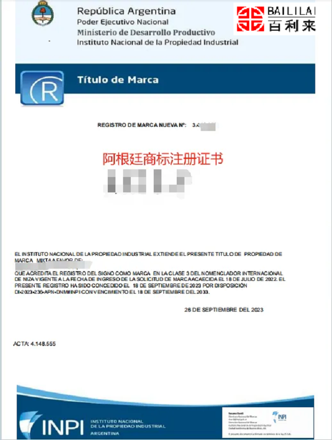 负责监管阿根廷商标的主要政府机构为阿根廷国家工业产权局(Instituto Nacional de la Propiedad Industrial,INPI)。
