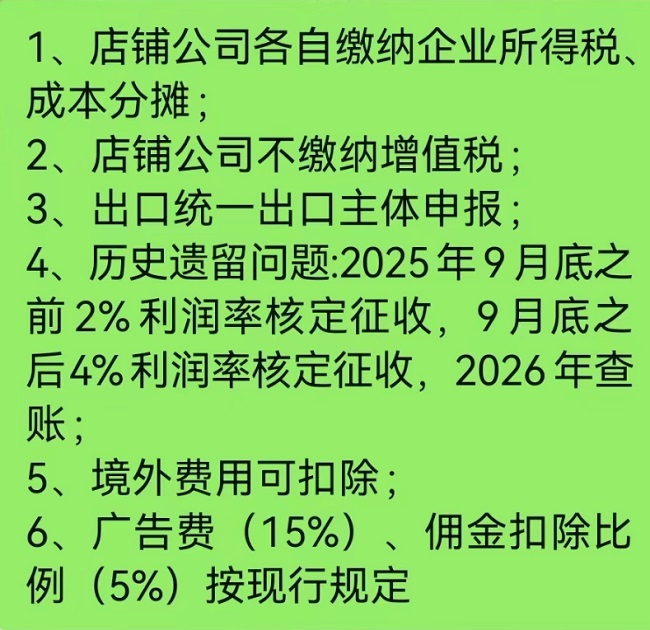 如果你算不清(比如店群模式):可以由运营主体统一核算总成本,然后按各店铺的收入占比,把成本分摊下去。只要总税负没减少,就不用补税。